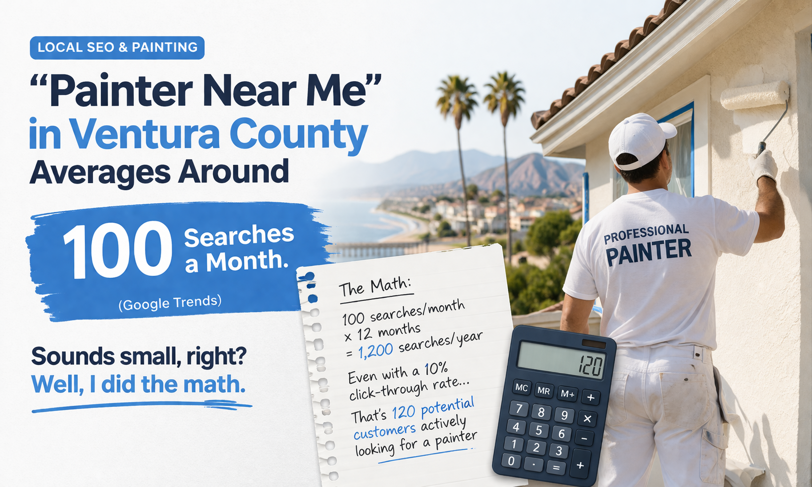 "Painter near me" in Ventura county averages around 100 searches a month.(Google Trends) Sounds small right? Well I did the math.